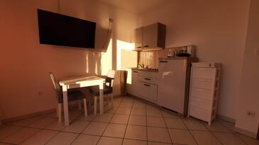 Ferienwohnung bietet Platz für 4 Gäste. Die Betten sind in Schlafzimmern, die es 1 gibt, und in Wohnzimmer, innerhalb einer Gesamtfläche von 44m2, angeordnet. Die Gäste haben einen eigenen Balkon zur Verfügung, auf der sie in warmen Sommernächten genießen können. Das Apartment bietet Meerblick. Es ist erlaubt, Speisen auf dem Gemeinschafts-Grill vorzubereiten.