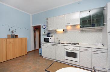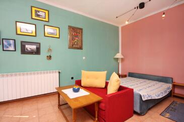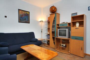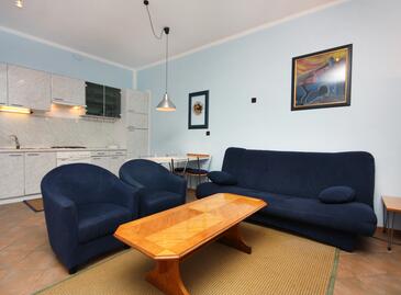Ferienwohnung bietet Platz für 4 Gäste. Die Betten sind in Schlafzimmern, die es 1 gibt, und in Wohnzimmer, innerhalb einer Gesamtfläche von 38m2, angeordnet. Die Gäste haben eine eigene Terrasse zur Verfügung, auf der sie in warmen Sommernächten genießen können. Das Apartment bietet Meerblick. Es ist erlaubt, Speisen auf dem Gemeinschafts-Grill vorzubereiten. In der Unterkunftseinheit besteht die Möglichkeit des Mitbringens von Haustieren gegen Aufpreis. Durch die Terrasse der gebuchten Unterkunftseinheit gehen auch andere Gäste oder Vermieter.