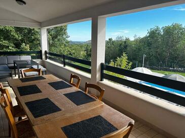 Haus bietet Platz für 6 Gäste. Die Betten sind in Schlafzimmern, die es 3 gibt, innerhalb einer Gesamtfläche von 104m2, angeordnet. Die Gäste haben eine eigene Terrasse zur Verfügung, auf der sie in warmen Sommernächten genießen können. Es ist erlaubt, Speisen auf dem Gemeinschafts-Grill vorzubereiten. Während ihres Aufenthalts können sich Gäste im privaten Schwimmbad entspannen.