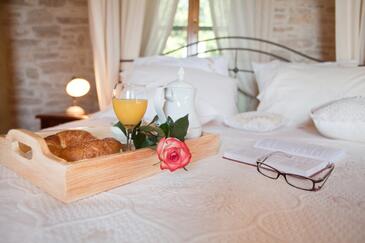 Haus bietet Platz für 6 Gäste. Die Betten sind in Schlafzimmern, die es 3 gibt, innerhalb einer Gesamtfläche von 112m2, angeordnet. Die Gäste haben eine eigene Terrasse zur Verfügung, auf der sie in warmen Sommernächten genießen können. Das Haus bietet Meerblick. Für vollen Genuss und Entspannung gibt es einen privaten Grill für Gäste dieser Unterkunft. Während ihres Aufenthalts können sich Gäste im privaten Schwimmbad entspannen. In der Unterkunftseinheit besteht die Möglichkeit des Mitbringens von Haustieren gegen Aufpreis. In der gebuchten Unterkunftseinheit zahlt man am Ort ein Depositum ( der Preis ist an der Internetseite angeführt ).