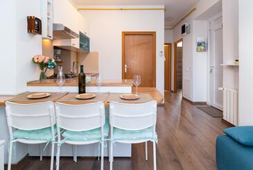 Ferienwohnung bietet Platz für 3 Gäste. Die Betten sind in Schlafzimmern, die es 2 gibt, innerhalb einer Gesamtfläche von 42m2, angeordnet. In der Unterkunftseinheit besteht die Möglichkeit des Mitbringens von Haustieren gegen Aufpreis. Die reservierte Unterkunftseinheit hat keinen Balkon und keine Terrasse.