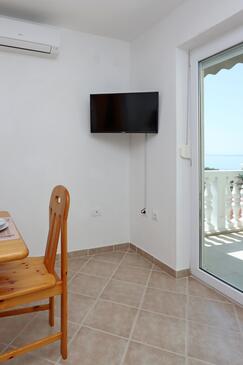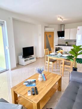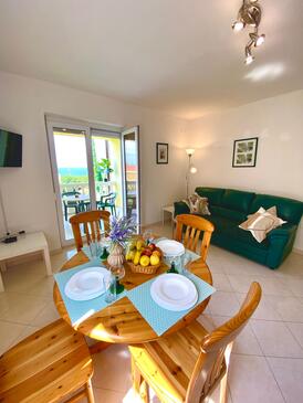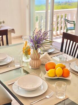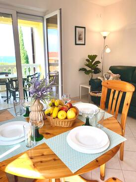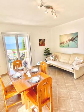 Ferienwohnung bietet Platz für 4 Gäste. Die Betten sind in Schlafzimmern, die es 2 gibt, innerhalb einer Gesamtfläche von 49m2, angeordnet. Die Gäste haben eine eigene Terrasse zur Verfügung, auf der sie in warmen Sommernächten genießen können. Das Apartment bietet Meerblick.