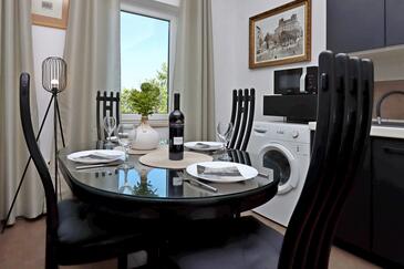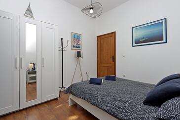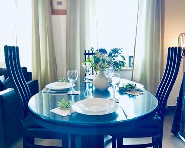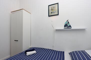 Ferienwohnung bietet Platz für 4 Gäste. Die Betten sind in Schlafzimmern, die es 2 gibt, innerhalb einer Gesamtfläche von 46m2, angeordnet. Die Gäste haben eine eigene Terrasse zur Verfügung, auf der sie in warmen Sommernächten genießen können. Das Apartment bietet Meerblick. Es ist erlaubt, Speisen auf dem Gemeinschafts-Grill vorzubereiten.