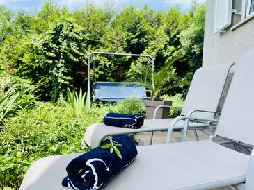 Ferienwohnung bietet Platz für 4 Gäste. Die Betten sind in Schlafzimmern, die es 2 gibt, innerhalb einer Gesamtfläche von 46m2, angeordnet. Die Gäste haben eine eigene Terrasse zur Verfügung, auf der sie in warmen Sommernächten genießen können. Das Apartment bietet Meerblick. Es ist erlaubt, Speisen auf dem Gemeinschafts-Grill vorzubereiten.