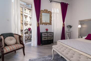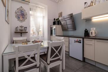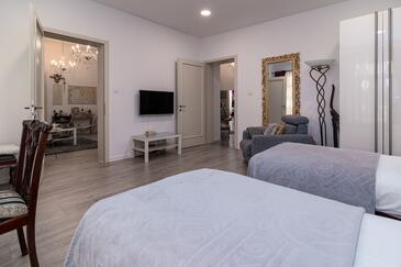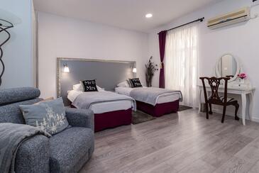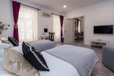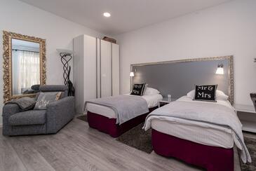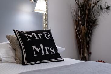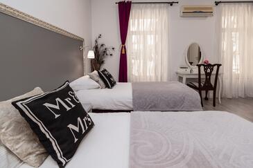 Ferienwohnung bietet Platz für 4 Gäste. Die Betten sind in Schlafzimmern, die es 2 gibt, innerhalb einer Gesamtfläche von 105m2, angeordnet. Die Gäste haben einen eigenen Balkon zur Verfügung, auf der sie in warmen Sommernächten genießen können.