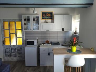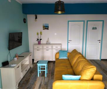 Ferienwohnung bietet Platz für 3 Gäste. Die Betten sind in Schlafzimmern, die es 1 gibt, und in Wohnzimmer, innerhalb einer Gesamtfläche von 48m2, angeordnet. Die Gäste haben eine eigene Terrasse zur Verfügung, auf der sie in warmen Sommernächten genießen können. Es ist erlaubt, Speisen auf dem Gemeinschafts-Grill vorzubereiten. Durch die Terrasse der gebuchten Unterkunftseinheit gehen auch andere Gäste oder Vermieter.
