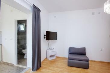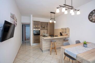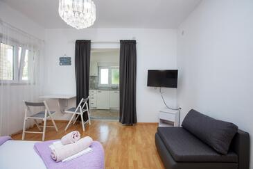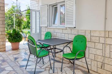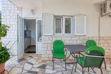 Ferienwohnung bietet Platz für 4 Gäste. Die Betten sind in Schlafzimmern, die es 2 gibt, innerhalb einer Gesamtfläche von 42m2, angeordnet. Die Gäste haben eine eigene Terrasse zur Verfügung, auf der sie in warmen Sommernächten genießen können. Es ist erlaubt, Speisen auf dem Gemeinschafts-Grill vorzubereiten.