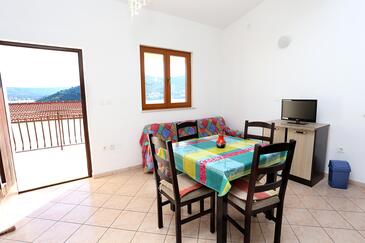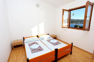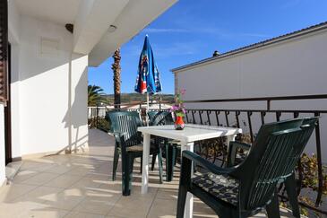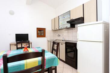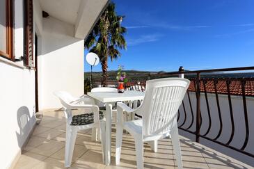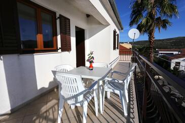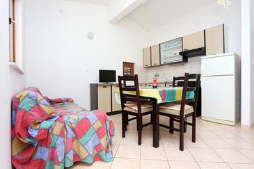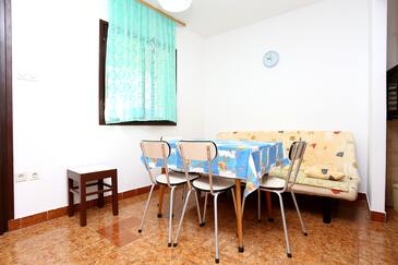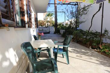 Ferienwohnung bietet Platz für 4 Gäste. Die Betten sind in Schlafzimmern, die es 2 gibt, innerhalb einer Gesamtfläche von 43m2, angeordnet. Die Gäste haben eine eigene Terrasse zur Verfügung, auf der sie in warmen Sommernächten genießen können. Das Apartment bietet Meerblick. Es ist erlaubt, Speisen auf dem Gemeinschafts-Grill vorzubereiten.