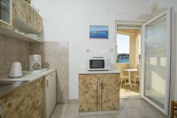 Ferienwohnung bietet Platz für 4 Gäste. Die Betten sind in Schlafzimmern, die es 1 gibt, innerhalb einer Gesamtfläche von 34m2, angeordnet. Die Gäste haben eine eigene Terrasse zur Verfügung, auf der sie in warmen Sommernächten genießen können. Das Apartment bietet Meerblick.