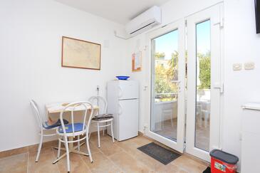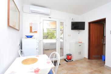 Ferienwohnung bietet Platz für 6 Gäste. Die Betten sind in Schlafzimmern, die es 3 gibt, innerhalb einer Gesamtfläche von 60m2, angeordnet. Die Gäste haben eine eigene Terrasse zur Verfügung, auf der sie in warmen Sommernächten genießen können. Das Apartment bietet Meerblick. Es ist erlaubt, Speisen auf dem Gemeinschafts-Grill vorzubereiten. In der Unterkunftseinheit besteht die Möglichkeit des Mitbringens von Haustieren gegen Aufpreis. Räume der gebuchten Unterkunftseinheit werden nicht in eine Ganze verbunden.