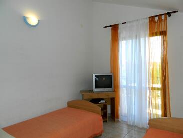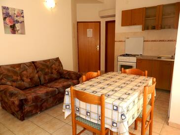 Ferienwohnung bietet Platz für 4 Gäste. Die Betten sind in Schlafzimmern, die es 2 gibt, innerhalb einer Gesamtfläche von 50m2, angeordnet. Die Gäste haben eine eigene Terrasse zur Verfügung, auf der sie in warmen Sommernächten genießen können.