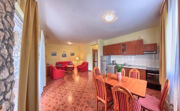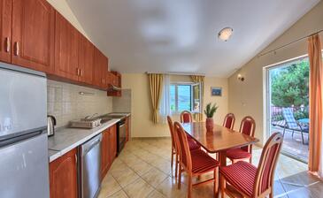 Ferienwohnung bietet Platz für 7 Gäste. Die Betten sind in Schlafzimmern, die es 3 gibt, und in Wohnzimmer, innerhalb einer Gesamtfläche von 88m2, angeordnet. Die Gäste haben eine eigene Terrasse zur Verfügung, auf der sie in warmen Sommernächten genießen können. Das Apartment bietet Meerblick. Es ist erlaubt, Speisen auf dem Gemeinschafts-Grill vorzubereiten. In der Unterkunftseinheit besteht die Möglichkeit des Mitbringens von Haustieren gegen Aufpreis.