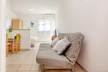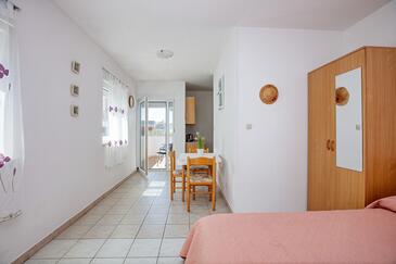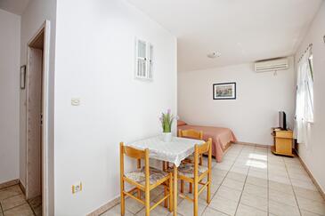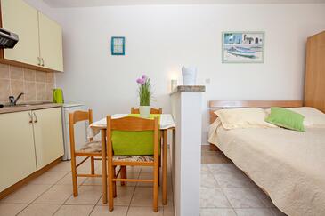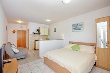 Ferienwohnung bietet Platz für 2 Gäste. Die Betten sind in Schlafzimmern, die es 1 gibt, innerhalb einer Gesamtfläche von 30m2, angeordnet. Die Gäste haben eine eigene Terrasse zur Verfügung, auf der sie in warmen Sommernächten genießen können. Es ist erlaubt, Speisen auf dem Gemeinschafts-Grill vorzubereiten.