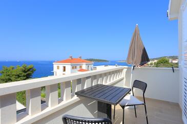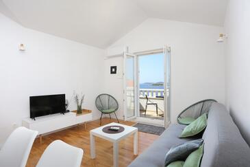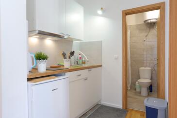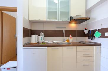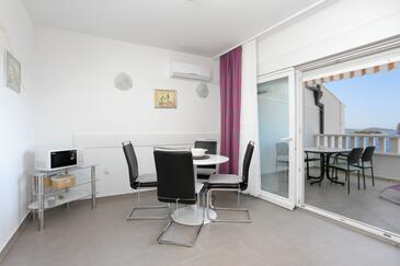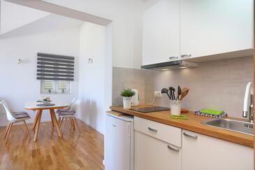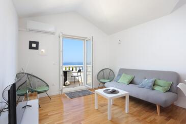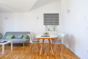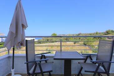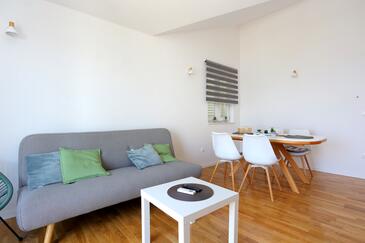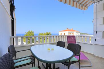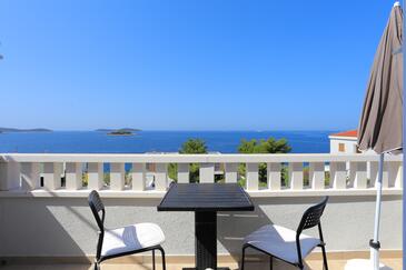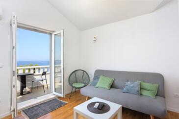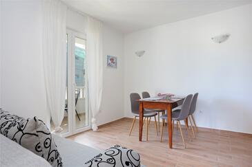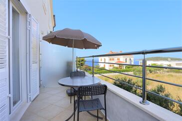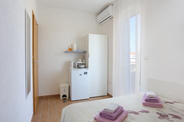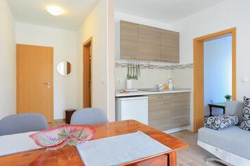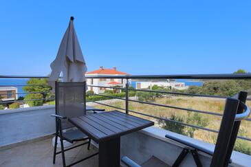 Ferienwohnung bietet Platz für 4 Gäste. Die Betten sind in Schlafzimmern, die es 2 gibt, innerhalb einer Gesamtfläche von 37m2, angeordnet. Die Gäste haben eine eigene Terrasse zur Verfügung, auf der sie in warmen Sommernächten genießen können. Das Apartment bietet Meerblick. Es ist erlaubt, Speisen auf dem Gemeinschafts-Grill vorzubereiten.