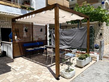 Ferienwohnung bietet Platz für 4 Gäste. Die Betten sind in Schlafzimmern, die es 2 gibt, innerhalb einer Gesamtfläche von 50m2, angeordnet. Die Gäste haben eine eigene Terrasse zur Verfügung, auf der sie in warmen Sommernächten genießen können.