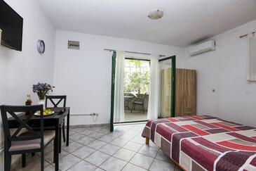 Ferienwohnung bietet Platz für 4 Gäste. Die Betten sind in Schlafzimmern, die es 1 gibt, und in Wohnzimmer, innerhalb einer Gesamtfläche von 37m2, angeordnet. Die Gäste haben eine eigene Terrasse zur Verfügung, auf der sie in warmen Sommernächten genießen können. Es ist erlaubt, Speisen auf dem Gemeinschafts-Grill vorzubereiten.