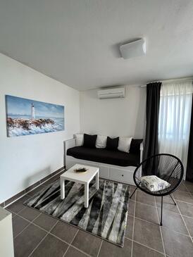 Ferienwohnung bietet Platz für 4 Gäste. Die Betten sind in Schlafzimmern, die es 1 gibt, und in Wohnzimmer, innerhalb einer Gesamtfläche von 38m2, angeordnet. Die Gäste haben eine eigene Terrasse zur Verfügung, auf der sie in warmen Sommernächten genießen können. Das Apartment bietet Meerblick.
