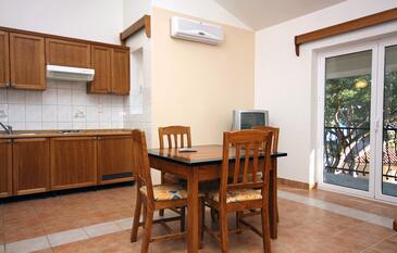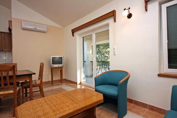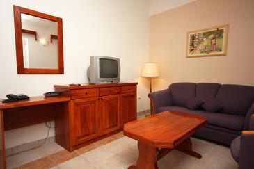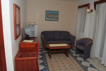Ferienwohnung bietet Platz für 3 Gäste. Die Betten sind in Schlafzimmern, die es 1 gibt, und in Wohnzimmer, innerhalb einer Gesamtfläche von 39m2, angeordnet. Die Gäste haben eine eigene Terrasse zur Verfügung, auf der sie in warmen Sommernächten genießen können. Das Apartment bietet Meerblick. Es ist erlaubt, Speisen auf dem Gemeinschafts-Grill vorzubereiten. In der Unterkunftseinheit besteht die Möglichkeit des Mitbringens von Haustieren gegen Aufpreis. In der gebuchten Unterkunftseinheit zahlt man am Ort ein Depositum ( der Preis ist an der Internetseite angeführt ).
