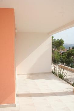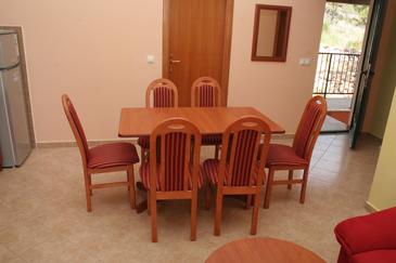 Ferienwohnung bietet Platz für 5 Gäste. Die Betten sind in Schlafzimmern, die es 2 gibt, und in Wohnzimmer, innerhalb einer Gesamtfläche von 56m2, angeordnet. Die Gäste haben eine eigene Terrasse zur Verfügung, auf der sie in warmen Sommernächten genießen können. Das Apartment bietet Meerblick. Es ist erlaubt, Speisen auf dem Gemeinschafts-Grill vorzubereiten. In der Unterkunftseinheit besteht die Möglichkeit des Mitbringens von Haustieren gegen Aufpreis.