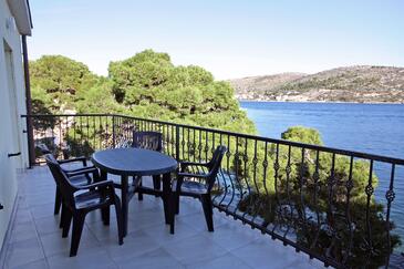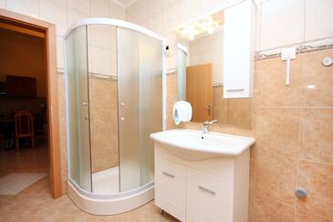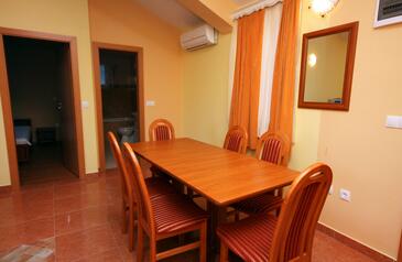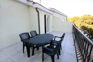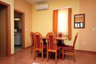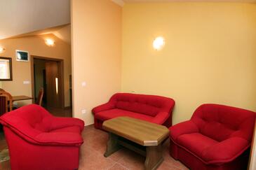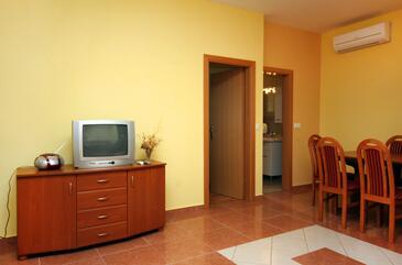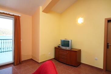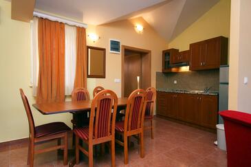 Ferienwohnung bietet Platz für 5 Gäste. Die Betten sind in Schlafzimmern, die es 2 gibt, und in Wohnzimmer, innerhalb einer Gesamtfläche von 55m2, angeordnet. Die Gäste haben eine eigene Terrasse zur Verfügung, auf der sie in warmen Sommernächten genießen können. Das Apartment bietet Meerblick. Es ist erlaubt, Speisen auf dem Gemeinschafts-Grill vorzubereiten. In der Unterkunftseinheit besteht die Möglichkeit des Mitbringens von Haustieren gegen Aufpreis. In der gebuchten Unterkunftseinheit zahlt man am Ort ein Depositum ( der Preis ist an der Internetseite angeführt ).