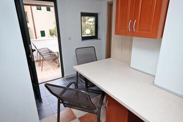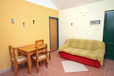 Ferienwohnung bietet Platz für 5 Gäste. Die Betten sind in Schlafzimmern, die es 2 gibt, und in Wohnzimmer, innerhalb einer Gesamtfläche von 51m2, angeordnet. Die Gäste haben eine eigene Terrasse zur Verfügung, auf der sie in warmen Sommernächten genießen können. Das Apartment bietet Meerblick. Es ist erlaubt, Speisen auf dem Gemeinschafts-Grill vorzubereiten. In der Unterkunftseinheit besteht die Möglichkeit des Mitbringens von Haustieren gegen Aufpreis. In der gebuchten Unterkunftseinheit zahlt man am Ort ein Depositum ( der Preis ist an der Internetseite angeführt ).