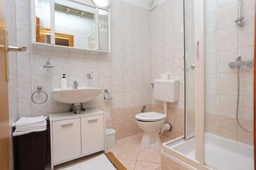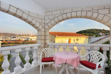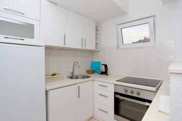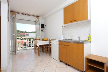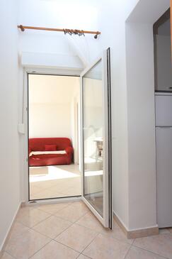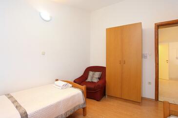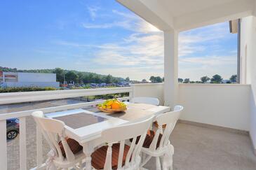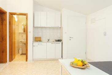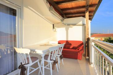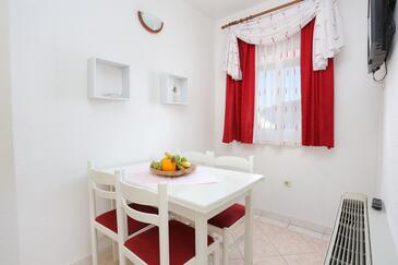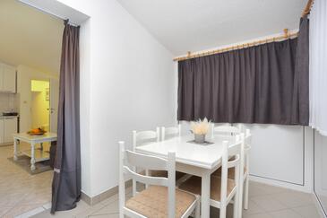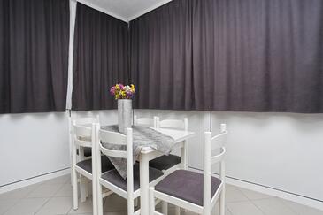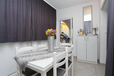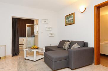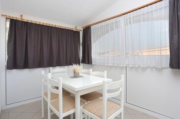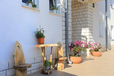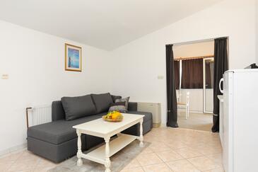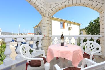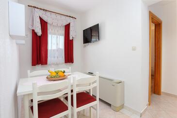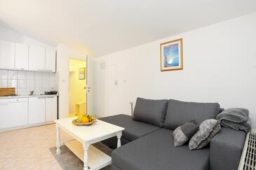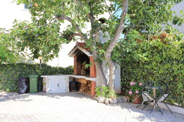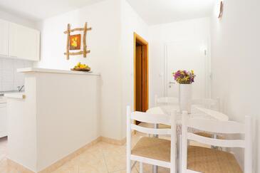 Ferienwohnung bietet Platz für 6 Gäste. Die Betten sind in Schlafzimmern, die es 2 gibt, und in Wohnzimmer, innerhalb einer Gesamtfläche von 45m2, angeordnet. Die Gäste haben eine eigene Terrasse zur Verfügung, auf der sie in warmen Sommernächten genießen können. Das Apartment bietet Meerblick. Es ist erlaubt, Speisen auf dem Gemeinschafts-Grill vorzubereiten.