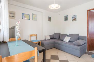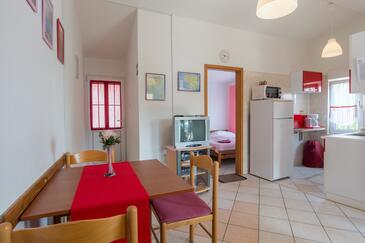 Ferienwohnung bietet Platz für 4 Gäste. Die Betten sind in Schlafzimmern, die es 1 gibt, und in Esszimmer, innerhalb einer Gesamtfläche von 29m2, angeordnet. Die Gäste haben eine eigene Terrasse zur Verfügung, auf der sie in warmen Sommernächten genießen können. Das Apartment bietet Meerblick. Es ist erlaubt, Speisen auf dem Gemeinschafts-Grill vorzubereiten.