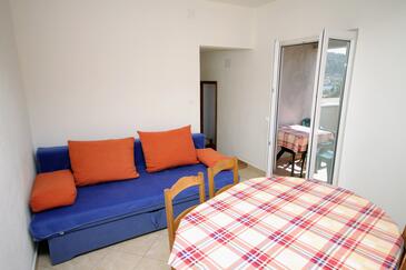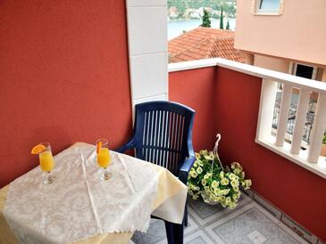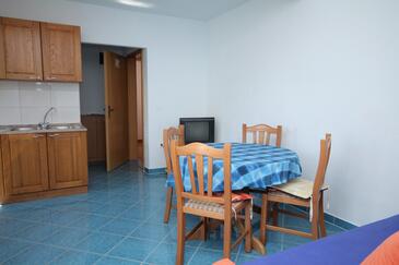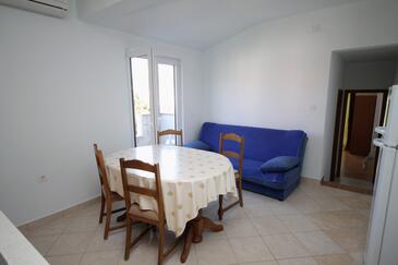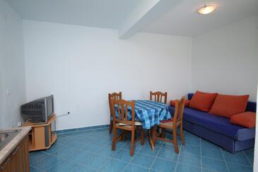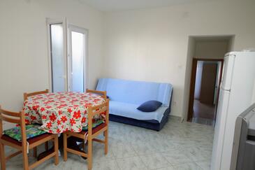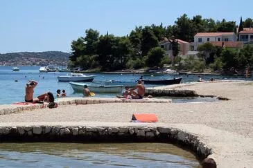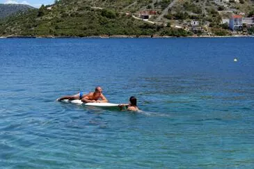 Ferienwohnung bietet Platz für 4 Gäste. Die Betten sind in Schlafzimmern, die es 2 gibt, innerhalb einer Gesamtfläche von 35m2, angeordnet. Die Gäste haben eine eigene Terrasse zur Verfügung, auf der sie in warmen Sommernächten genießen können. Das Apartment bietet Meerblick. Es ist erlaubt, Speisen auf dem Gemeinschafts-Grill vorzubereiten.