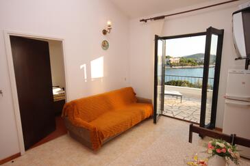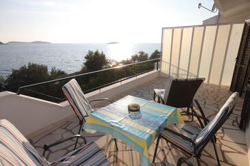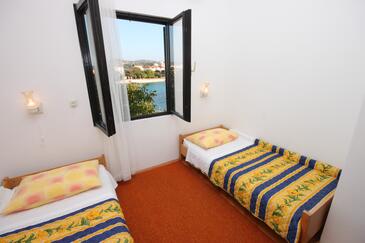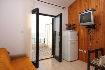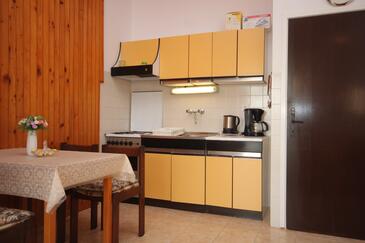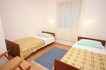 Ferienwohnung bietet Platz für 6 Gäste. Die Betten sind in Schlafzimmern, die es 3 gibt, innerhalb einer Gesamtfläche von 75m2, angeordnet. Die Gäste haben eine eigene Terrasse zur Verfügung, auf der sie in warmen Sommernächten genießen können. Es ist erlaubt, Speisen auf dem Gemeinschafts-Grill vorzubereiten.