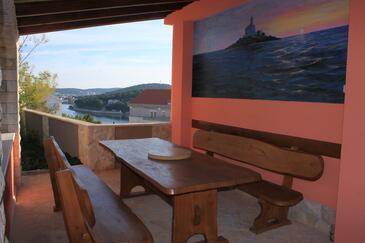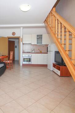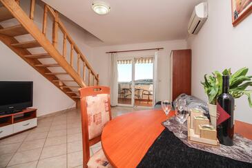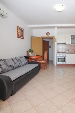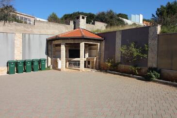 Ferienwohnung bietet Platz für 6 Gäste. Die Betten sind in Schlafzimmern, die es 2 gibt, und in Wohnzimmer, innerhalb einer Gesamtfläche von 78m2, angeordnet. Die Gäste haben eine eigene Terrasse zur Verfügung, auf der sie in warmen Sommernächten genießen können. Das Apartment bietet Meerblick. Es ist erlaubt, Speisen auf dem Gemeinschafts-Grill vorzubereiten.