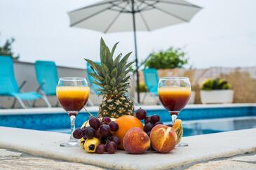 Haus bietet Platz für 16 Gäste. Die Betten sind in Schlafzimmern, die es 4 gibt, und in Wohnzimmer, innerhalb einer Gesamtfläche von 166m2, angeordnet. Die Gäste haben einen eigenen Balkon zur Verfügung, auf der sie in warmen Sommernächten genießen können. Das Haus bietet Meerblick. Für vollen Genuss und Entspannung gibt es einen privaten Grill für Gäste dieser Unterkunft. Während ihres Aufenthalts können sich Gäste im privaten Schwimmbad entspannen. In der Unterkunftseinheit besteht die Möglichkeit des Mitbringens von Haustieren, und die Dienstleistung ist im Preis der Unterkunft enthalten. Räume der gebuchten Unterkunftseinheit werden nicht in eine Ganze verbunden.
