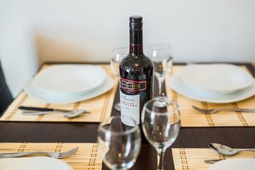 Haus bietet Platz für 16 Gäste. Die Betten sind in Schlafzimmern, die es 4 gibt, und in Wohnzimmer, innerhalb einer Gesamtfläche von 166m2, angeordnet. Die Gäste haben einen eigenen Balkon zur Verfügung, auf der sie in warmen Sommernächten genießen können. Das Haus bietet Meerblick. Für vollen Genuss und Entspannung gibt es einen privaten Grill für Gäste dieser Unterkunft. Während ihres Aufenthalts können sich Gäste im privaten Schwimmbad entspannen. In der Unterkunftseinheit besteht die Möglichkeit des Mitbringens von Haustieren, und die Dienstleistung ist im Preis der Unterkunft enthalten. Räume der gebuchten Unterkunftseinheit werden nicht in eine Ganze verbunden.