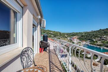 Ferienwohnung bietet Platz für 4 Gäste. Die Betten sind in Schlafzimmern, die es 1 gibt, und in Wohnzimmer, innerhalb einer Gesamtfläche von 41m2, angeordnet. Die Gäste haben einen eigenen Balkon zur Verfügung, auf der sie in warmen Sommernächten genießen können. Das Apartment bietet Meerblick. Es ist erlaubt, Speisen auf dem Gemeinschafts-Grill vorzubereiten.