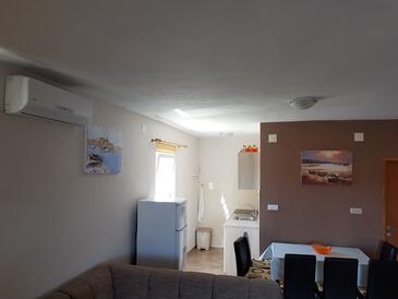 Ferienwohnung bietet Platz für 4 Gäste. Die Betten sind in Schlafzimmern, die es 2 gibt, innerhalb einer Gesamtfläche von 53m2, angeordnet. Die Gäste haben eine eigene Terrasse zur Verfügung, auf der sie in warmen Sommernächten genießen können. Das Apartment bietet Meerblick. Es ist erlaubt, Speisen auf dem Gemeinschafts-Grill vorzubereiten.