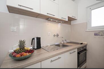 Ferienwohnung bietet Platz für 4 Gäste. Die Betten sind in Schlafzimmern, die es 2 gibt, innerhalb einer Gesamtfläche von 33m2, angeordnet. Die Gäste haben eine eigene Terrasse zur Verfügung, auf der sie in warmen Sommernächten genießen können. Das Apartment bietet Meerblick. Es ist erlaubt, Speisen auf dem Gemeinschafts-Grill vorzubereiten.
