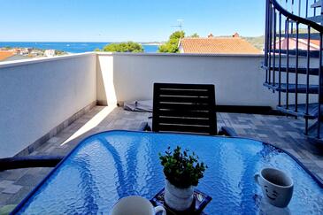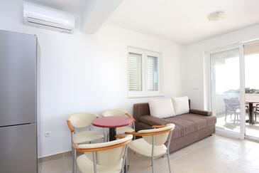 Ferienwohnung bietet Platz für 3 Gäste. Die Betten sind in Schlafzimmern, die es 1 gibt, und in Wohnzimmer, innerhalb einer Gesamtfläche von 31m2, angeordnet. Die Gäste haben eine eigene Terrasse zur Verfügung, auf der sie in warmen Sommernächten genießen können. Das Apartment bietet Meerblick. Es ist erlaubt, Speisen auf dem Gemeinschafts-Grill vorzubereiten.
