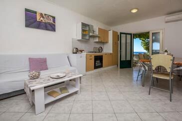 Haus bietet Platz für 5 Gäste. Die Betten sind in Schlafzimmern, die es 3 gibt, innerhalb einer Gesamtfläche von 59m2, angeordnet. Die Gäste haben eine eigene Terrasse zur Verfügung, auf der sie in warmen Sommernächten genießen können. Das Haus bietet Meerblick. Für vollen Genuss und Entspannung gibt es einen privaten Grill für Gäste dieser Unterkunft.