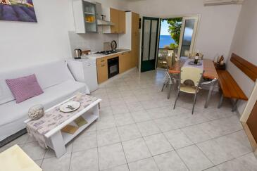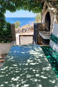 Haus bietet Platz für 5 Gäste. Die Betten sind in Schlafzimmern, die es 3 gibt, innerhalb einer Gesamtfläche von 59m2, angeordnet. Die Gäste haben eine eigene Terrasse zur Verfügung, auf der sie in warmen Sommernächten genießen können. Das Haus bietet Meerblick. Für vollen Genuss und Entspannung gibt es einen privaten Grill für Gäste dieser Unterkunft.