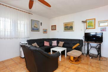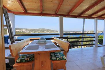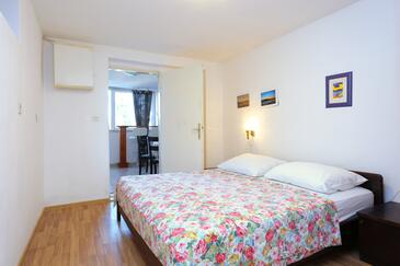 Ferienwohnung bietet Platz für 6 Gäste. Die Betten sind in Schlafzimmern, die es 2 gibt, und in Wohnzimmer, innerhalb einer Gesamtfläche von 61m2, angeordnet. Die Gäste haben eine eigene Terrasse zur Verfügung, auf der sie in warmen Sommernächten genießen können. Das Apartment bietet Meerblick. Es ist erlaubt, Speisen auf dem Gemeinschafts-Grill vorzubereiten.