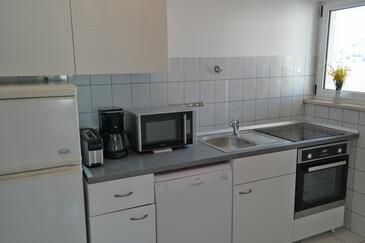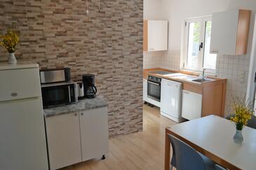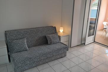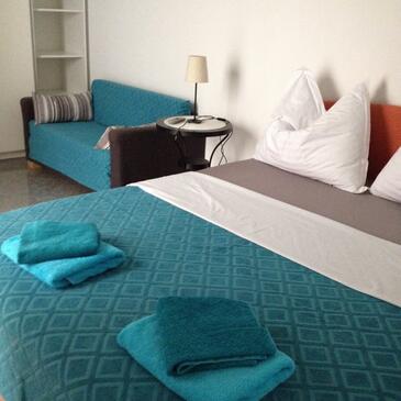 Ferienwohnung bietet Platz für 2 Gäste. Die Betten sind in Schlafzimmern, die es 1 gibt, innerhalb einer Gesamtfläche von 28m2, angeordnet. Die Gäste haben eine eigene Terrasse zur Verfügung, auf der sie in warmen Sommernächten genießen können. Das Apartment bietet Meerblick. Es ist erlaubt, Speisen auf dem Gemeinschafts-Grill vorzubereiten.