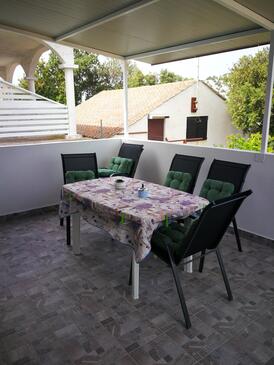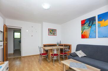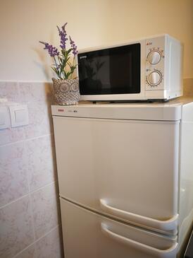 Ferienwohnung bietet Platz für 5 Gäste. Die Betten sind in Schlafzimmern, die es 2 gibt, und in Wohnzimmer, innerhalb einer Gesamtfläche von 50m2, angeordnet. Die Gäste haben eine eigene Terrasse zur Verfügung, auf der sie in warmen Sommernächten genießen können. Das Apartment bietet Meerblick. Es ist erlaubt, Speisen auf dem Gemeinschafts-Grill vorzubereiten.