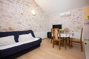Haus bietet Platz für 9 Gäste. Die Betten sind in Schlafzimmern, die es 5 gibt, innerhalb einer Gesamtfläche von 111m2, angeordnet. Die Gäste haben eine eigene Terrasse zur Verfügung, auf der sie in warmen Sommernächten genießen können. Das Haus bietet Meerblick. Für vollen Genuss und Entspannung gibt es einen privaten Grill für Gäste dieser Unterkunft. Während ihres Aufenthalts können sich Gäste im privaten Schwimmbad entspannen. Räume der gebuchten Unterkunftseinheit werden nicht in eine Ganze verbunden.