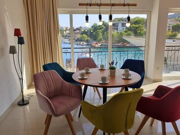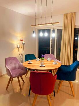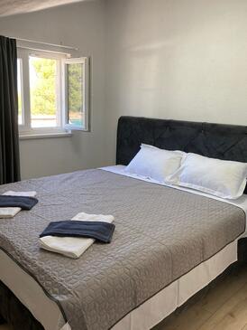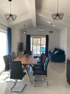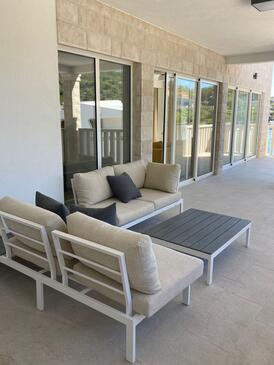 Haus bietet Platz für 10 Gäste. Die Betten sind in Schlafzimmern, die es 5 gibt, innerhalb einer Gesamtfläche von 189m2, angeordnet. Die Gäste haben eine eigene Terrasse zur Verfügung, auf der sie in warmen Sommernächten genießen können. Das Haus bietet Meerblick.