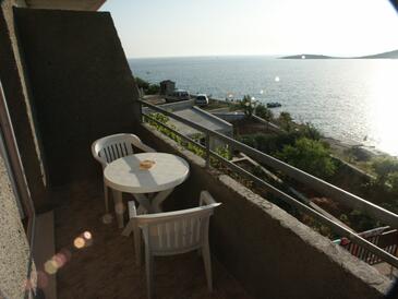 Ferienwohnung bietet Platz für 4 Gäste. Die Betten sind in Schlafzimmern, die es 2 gibt, innerhalb einer Gesamtfläche von 30m2, angeordnet. Die Gäste haben eine eigene Terrasse zur Verfügung, auf der sie in warmen Sommernächten genießen können. Das Apartment bietet Meerblick. Es ist erlaubt, Speisen auf dem Gemeinschafts-Grill vorzubereiten.