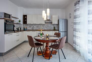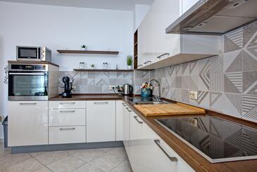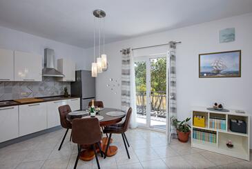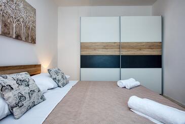 Ferienwohnung bietet Platz für 4 Gäste. Die Betten sind in Schlafzimmern, die es 2 gibt, innerhalb einer Gesamtfläche von 57m2, angeordnet. Die Gäste haben einen eigenen Balkon zur Verfügung, auf der sie in warmen Sommernächten genießen können. Es ist erlaubt, Speisen auf dem Gemeinschafts-Grill vorzubereiten.