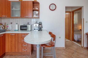 Ferienwohnung bietet Platz für 4 Gäste. Die Betten sind in Schlafzimmern, die es 2 gibt, innerhalb einer Gesamtfläche von 49m2, angeordnet. Die Gäste haben eine eigene Terrasse zur Verfügung, auf der sie in warmen Sommernächten genießen können. Es ist erlaubt, Speisen auf dem Gemeinschafts-Grill vorzubereiten.