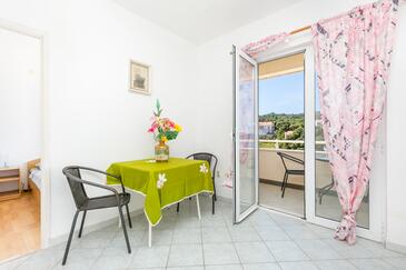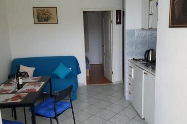 Ferienwohnung bietet Platz für 4 Gäste. Die Betten sind in Schlafzimmern, die es 2 gibt, innerhalb einer Gesamtfläche von 55m2, angeordnet. Die Gäste können den Meerblick von eigenem Balkon genießen. Für vollen Genuss und Entspannung gibt es einen privaten Grill für Gäste dieser Unterkunft. In der Unterkunftseinheit besteht die Möglichkeit des Mitbringens von Haustieren gegen Aufpreis.