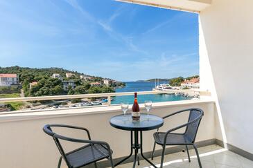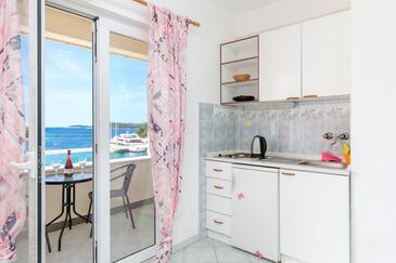 Ferienwohnung bietet Platz für 4 Gäste. Die Betten sind in Schlafzimmern, die es 2 gibt, innerhalb einer Gesamtfläche von 55m2, angeordnet. Die Gäste können den Meerblick von eigenem Balkon genießen. Für vollen Genuss und Entspannung gibt es einen privaten Grill für Gäste dieser Unterkunft. In der Unterkunftseinheit besteht die Möglichkeit des Mitbringens von Haustieren gegen Aufpreis.
