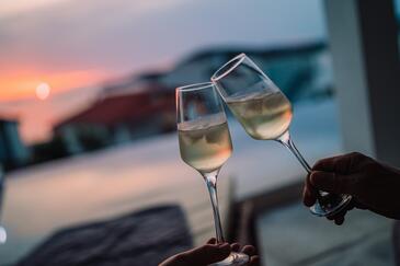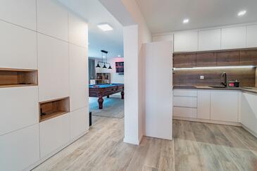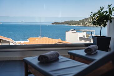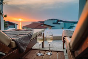 Haus bietet Platz für 6 Gäste. Die Betten sind in Schlafzimmern, die es 3 gibt, innerhalb einer Gesamtfläche von 94m2, angeordnet. Die Gäste haben eine eigene Terrasse zur Verfügung, auf der sie in warmen Sommernächten genießen können. Das Haus bietet Meerblick. Für vollen Genuss und Entspannung gibt es einen privaten Grill für Gäste dieser Unterkunft. Während ihres Aufenthalts können sich Gäste im privaten Schwimmbad entspannen. In der Unterkunftseinheit besteht die Möglichkeit des Mitbringens von Haustieren, und die Dienstleistung ist im Preis der Unterkunft enthalten.