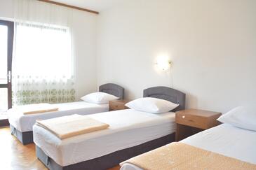 Ferienwohnung bietet Platz für 8 Gäste. Die Betten sind in Schlafzimmern, die es 3 gibt, innerhalb einer Gesamtfläche von 94m2, angeordnet. Die Gäste haben einen eigenen Balkon zur Verfügung, auf der sie in warmen Sommernächten genießen können. Das Apartment bietet Meerblick. Es ist erlaubt, Speisen auf dem Gemeinschafts-Grill vorzubereiten. Während ihres Aufenthalts können Gäste das gemeinsam zur Nutzung stehende Schwimmbad benutzen. In der Unterkunftseinheit besteht die Möglichkeit des Mitbringens von Haustieren gegen Aufpreis.